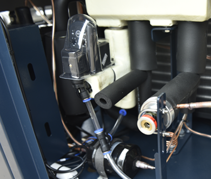 完善的智能保護(hù)裝置∶特設(shè)冷媒高低壓保護(hù)、相序缺相保護(hù)、過(guò)低溫保護(hù)、自動(dòng)融霜、故障自動(dòng)停機(jī)、自動(dòng)報(bào)警以及電機(jī)過(guò)熱保護(hù)等保護(hù)功能。 優(yōu)質(zhì)的制冷配件:松下、谷輪的壓縮機(jī),丹佛斯、艾默生的膨脹閥,冠亞氣液分離器,鷺宮壓力控制器等都是國(guó)際知名品牌。 人性化設(shè)計(jì):科學(xué)合理的結(jié)構(gòu)設(shè)計(jì),外型新穎,美觀大方,操作、維護(hù)、保養(yǎng)方便,安裝簡(jiǎn)便(無(wú)基礎(chǔ))。 嚴(yán)格的出廠檢測(cè):每臺(tái)機(jī)器出廠前都有做型式試驗(yàn),確保出廠產(chǎn)品100%合格。